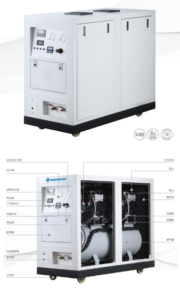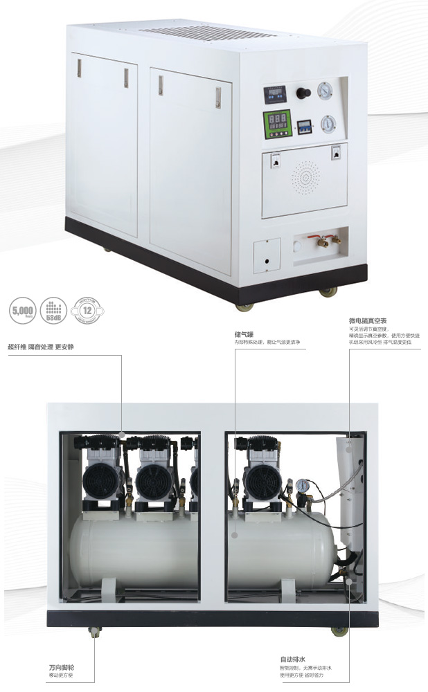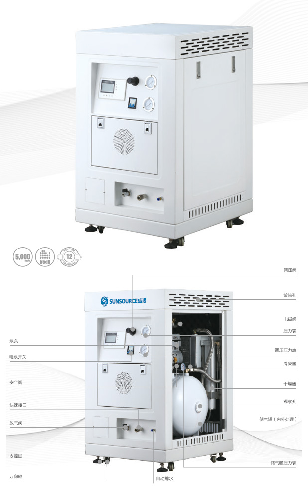 超纖維隔音棉可降低8-10dB,儲氣罐內部特殊處理讓空氣更潔凈